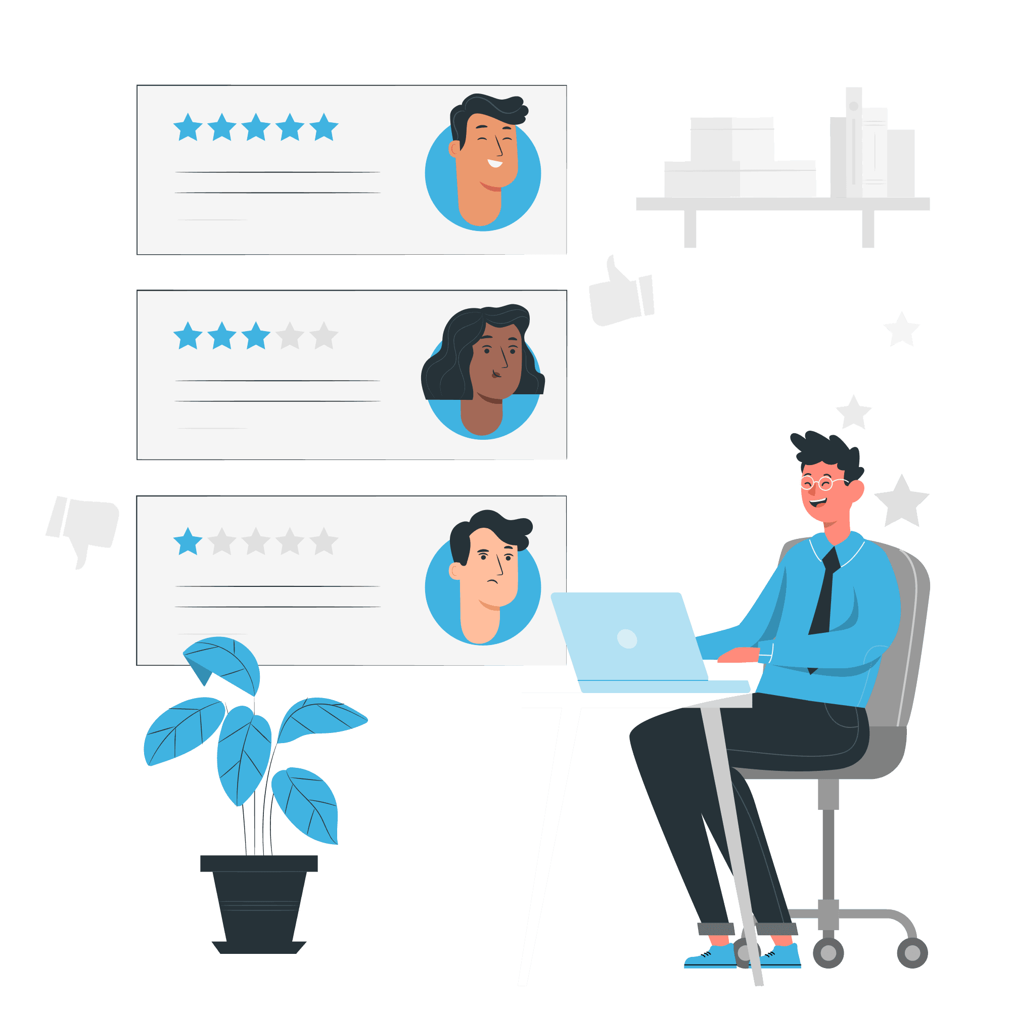 To boost his brand, David shares positive reviews by selecting and customizing snippets on the Review Snippets page, posting them on LinkedIn. He then creates a widget on the Widgets page and shares it with his developer for integration.