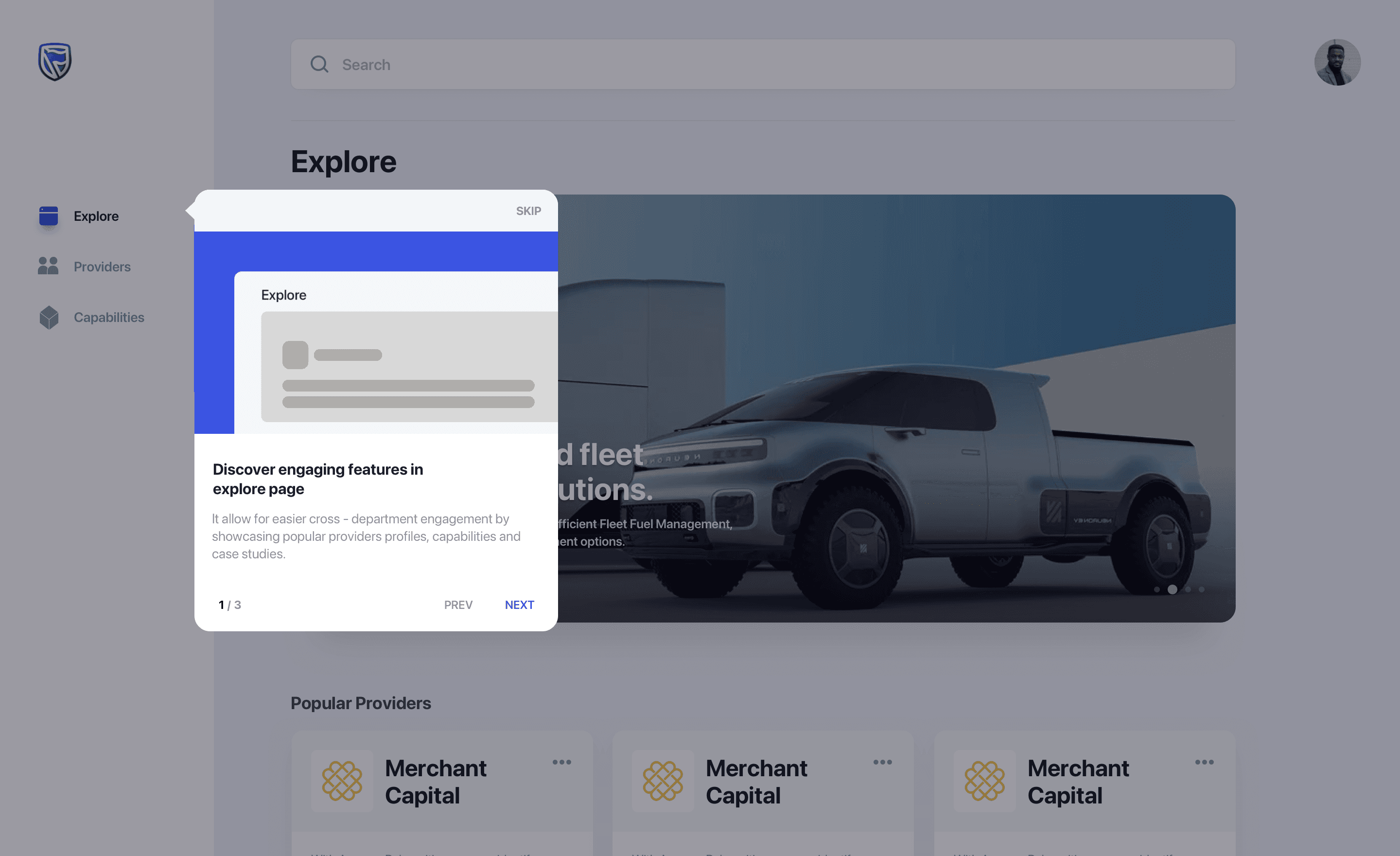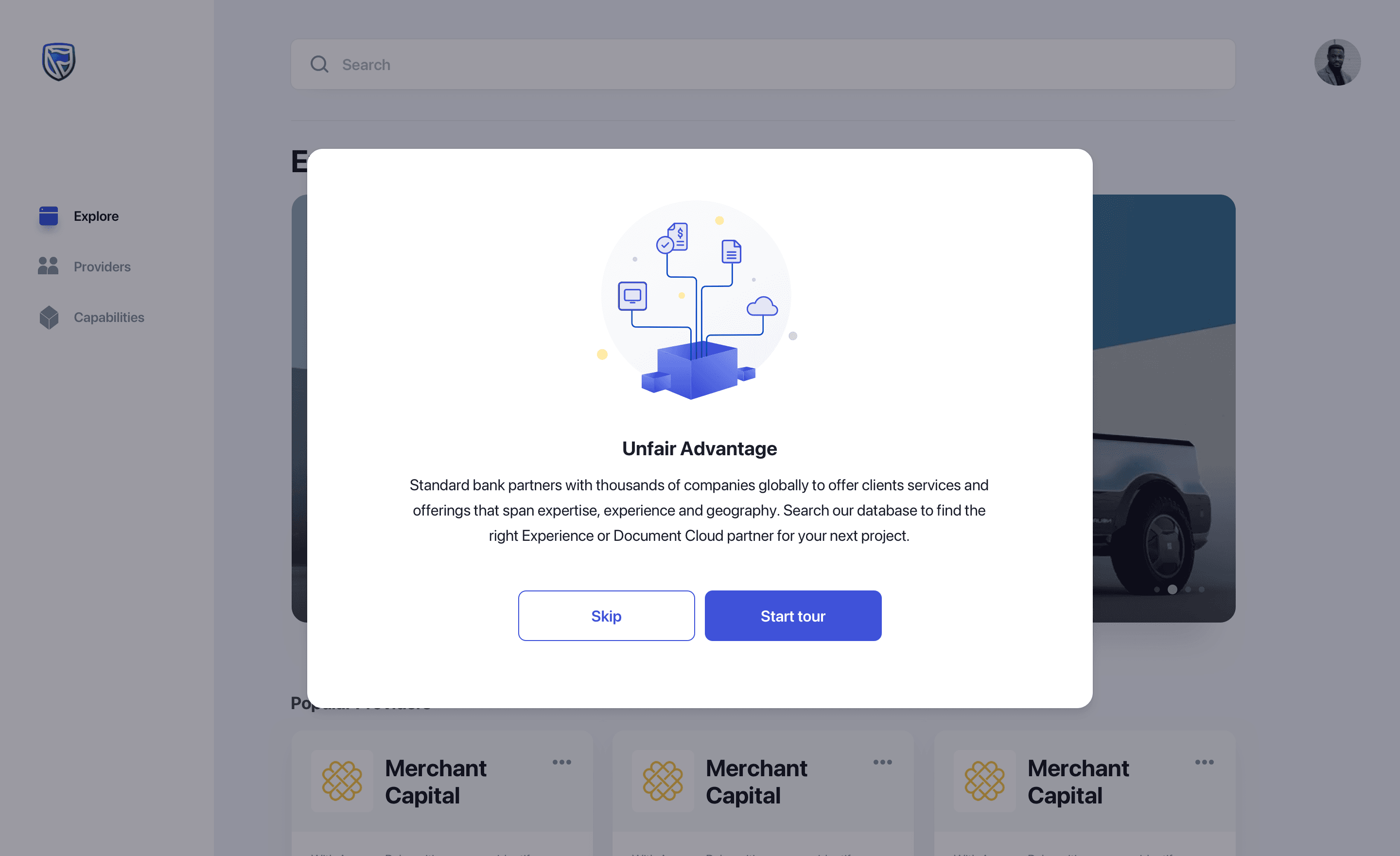 Marc works in the SBG product innovation department and is building a product in the lending domain. He wants to know about the previous engagement of SBG with lending partners. So he logs on to the portal and searches lending which provides