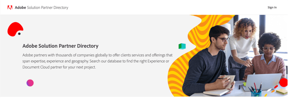 Adobe has two-level navigation and a simplistic catalogue of partners and solutions, with a maximum of a main search page and a detail page.